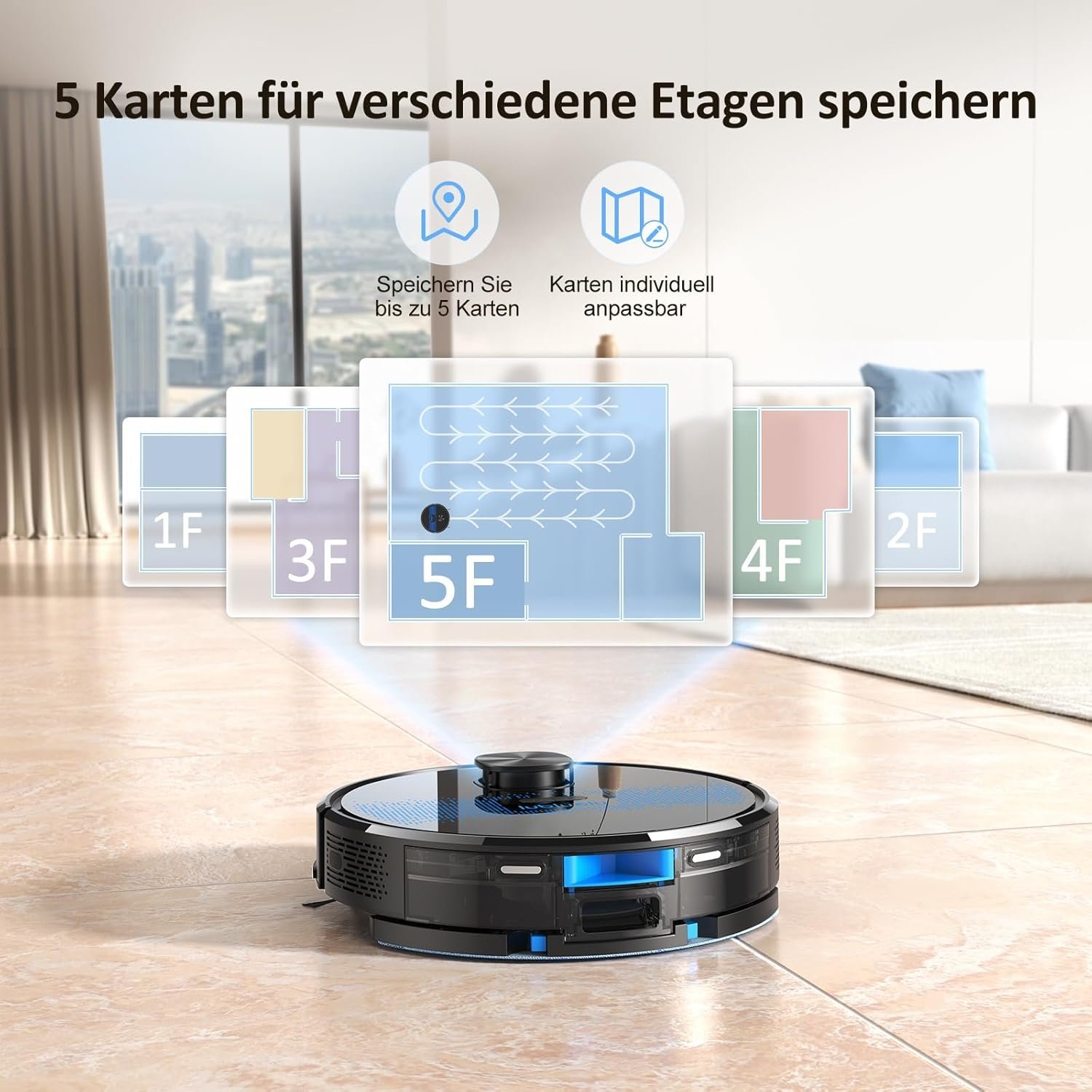 Radius von 8 Metern zur Optimierung der Abdeckung, Saugroboter mit Lasernavigation helfen bei der gründlichen Reinigung Ihres Hauses