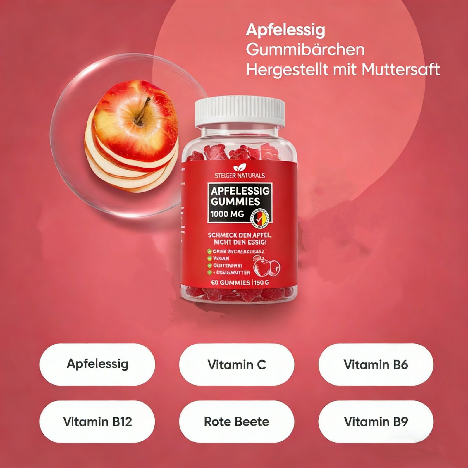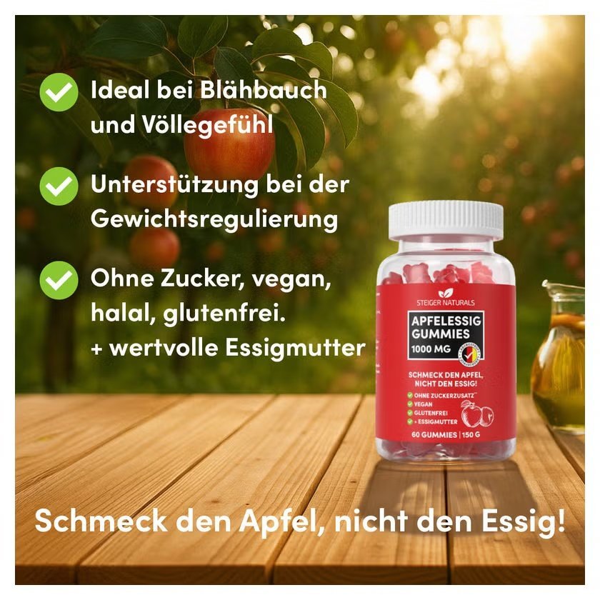 Die Apfelessig Gummies von Steiger Naturals sind ein absoluter Traum! Endlich Apfelessig genie?en, ohne den bitteren Geschmack ¨C einfach lecker.